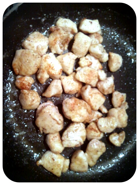 Mettete poi il pollo nella padella ormai calda e fate dorare i bocconcini.