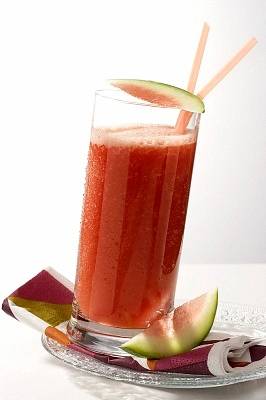Mettere le fragole sul fondo di un bicchiere alto e versare il cocktail sopra.